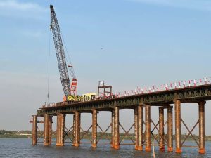 បច្ចុប្បន្នក្រុមហ៊ុនសាងសង់កំពុងមមាញឹកក្នុងសាងសង់ស្ពានដែកបណ្តោះអាសន្ន នៅផ្នែកខាងលិច បានប្រវែង២៧១ម៉ែត្រ ស្មើនឹង៥១ % នៃប្រវែងសរុប ៥៣៣ម៉ែត្រ និងផ្នែកខាងកើតកំពុងរៀបចំដំណើរការសាងសង់ស្ពានដែកបណ្តោះអាសន្ន ប្រវែង ៥៥៤ម៉ែត្រ ដើម្បីបំពាក់សម្ភារៈ គ្រឿងចក្រខួងសរសរគ្រឹះនាពេលខាងមុខដ៏ខ្លី។