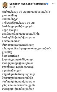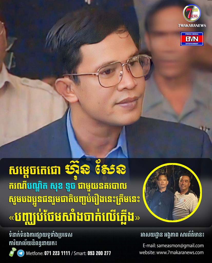 សម្តេចតេជោ ហ៊ុន សែន ករណី បណ្ឌិត សុខ ទូច ជាមួយនគរបាលសូមបងប្អូនជនរួមជាតិបញ្ចប់រឿងនេះត្រឹមនេះ«បញ្ឍប់ថែមសាំងចាក់លើភ្លើង»តាមរបៀបឈ្នះ ឈ្នះនិងសហការគ្នា