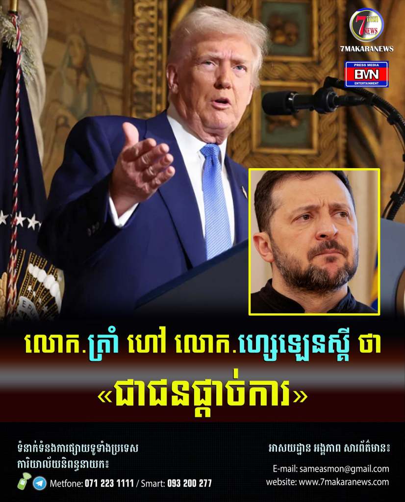ប្រធានាធិបតីអាមេរិកលោក Donald Trump បានហៅប្រធានាធិបតីអ៊ុយក្រែនលោក Volodymyr Zelensky ថាជា «ជនផ្តាច់ការ» លោក Trump ចោទប្រកាន់អ៊ុយក្រែនថាបានចាប់ផ្តើមសង្រ្គាមជាមួយនឹងរុស្ស៊ី។