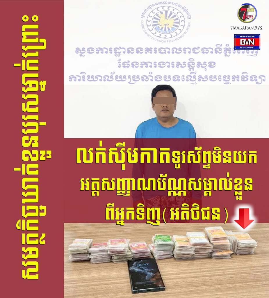 លោកឧត្តមសេនីយ៍ទោ ប៊ុន សុសិក្ខា ស្នងការរងទទួលផែនការងារសន្តិសុខ កាលពីថ្ងៃទី២៥ ខែកុម្ភៈ ឆ្នាំ២០២៥ បានដឹកនាំសមត្ថកិច្ចជំនាញការិយាល័យប្រឆាំងបទល្មើសបច្ចេកវិទ្យា នៃស្នងការដ្ឋាននគរបាលរាជធានីភ្នំពេញ សហការជាមួយកម្លាំងនាយកដ្ឋានប្រឆាំងបទល្មើសបច្ចេកវិទ្យា បានចុះឃាត់ខ្លួនអ្នកលក់ស៊ីមកាត ពាក់ព័ន្ធករណីលក់ស៊ីមកាតទូរស័ព្ទទៅឱ្យអ្នកប្រើប្រាស់ (អតិថិជន) ដោយមិនយកអត្តសញ្ញាណប័ណ្ណនិងប្រើប្រាស់អត្តសញ្ញាណប័ណ្ណអ្នកដទៃ ដើម្បីចុះឈ្មោះប្រើប្រាស់ប្រព័ន្ធស៊ីមកាតទូរស័ព្ទ ទុកលក់ទៅឱ្យអតិថិជនបន្តដែលគ្មានអត្តសញ្ញាណប័ណ្ណ ដោយអតិថិជននោះបានប្រើប្រាស់ស៊ីមកាតដែលទិញពីជនសង្ស័យខាងលើ យកទៅធ្វើសកម្មភាព ខលទៅឆបោកអ្នកដទៃ (ដូចជាការសម្តែងមានបងប្អូនមិត្តភក្តិ គ្រោះថ្នាក់ចរាចរណ៍ និងខលសម្តែងត្រូវរង្វាន់ផ្សេងៗផងដែរ)