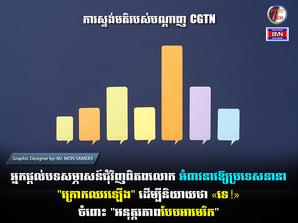 ការស្ទង់មតិរបស់បណ្តាញ CGTN៖ អ្នកផ្តល់បទសម្ភាសន៍ជុំវិញពិភពលោកអំពាវនាវឱ្យប្រទេសនានា “ក្រោកឈរឡើង” ដើម្បីនិយាយថា “ទេ”ចំពោះ “អនុត្តរភាពបែបអាមេរិក”