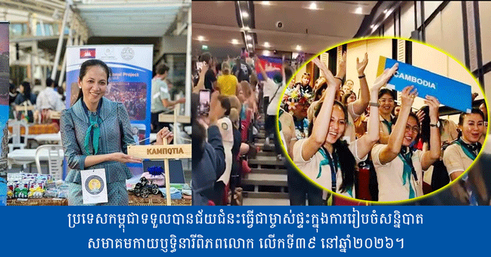 ប្រទេសកម្ពុជាទទួលបានជ័យជំនះធ្វើជាម្ចាស់ផ្ទះក្នុងការរៀបចំសន្និបាតសមាគមកាយប្ញទ្ធិនារីពិភពលោក លើកទី៣៩ នៅឆ្នាំ២០២៦។ កម្ពុជាទទួលបានលទ្ធផលជាប្រវត្តិសាស្ត្រ និងមហាកិត្តិយសដ៏ឧដុង្គឧត្តមបំផុត ដែលត្រូវបានបោះឆ្នោតជ្រើសរើសឱ្យធ្វើជាម្ចាស់ផ្ទះរៀបចំសន្និបាតពិភពលោកលើកទី ៣៩ នៅឆ្នាំ២០២៦ របស់សមាគមកាយប្ញទ្ធិនារីពិភពលោក (39th WAGGGS Conference)។ សូមបញ្ជាក់ថា៖ លោកជំទាវបណ្ឌិត ពេជ ចន្ទមុន្នី ហ៊ុនម៉ាណែត បានដឹកនាំគណៈប្រតិភូទៅ ចូលរួមអង្គសន្និបាតលើកទី ៣៨...