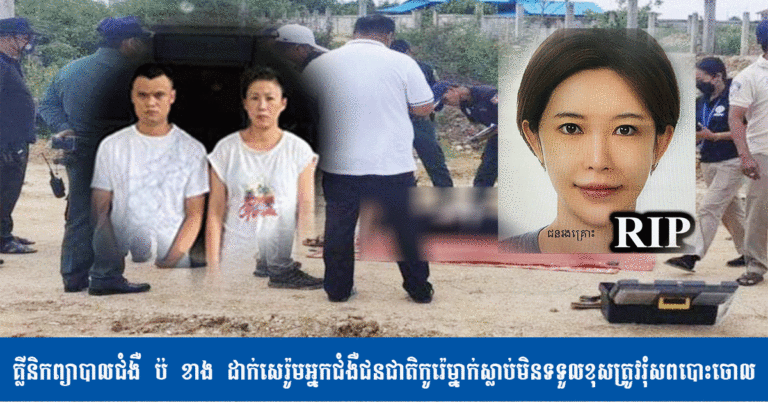 គ្លីនិកព្យាបាលជំងឺ ប៉ ខាង ដាក់សេរ៉ូមអ្នកជំងឺជនជាតិកូរ៉េម្នាក់ស្លាប់មិនទទួលខុសត្រូវរុំសពបោះចោល ចេញផ្សាយថ្ងៃទី១១ ខែមិថុនា ឆ្នាំ២០២៣ ខេត្តកណ្តាល៖ កាលពីថ្ងៃទី៦ ខែមិថុនា ឆ្នាំ២០២៣ ប្រជាពលរដ្ឋបានប្រទះឃើញ សាកសពនារីម្នាក់ មិនស្គាល់អត្តសញ្ញាណ ត្រូវបានគេរុំកន្ទេលយកមកផ្លុងចោលនៅរណ្តៅដីជីកដាក់លូ នៅក្នុងបូរីកាងម៉េង ស្ថិតនៅភូមិឆ្មាពួន ឃុំជើងកើប ស្រុកកណ្តាលស្ទឹង ខេត្តកណ្តាល។...