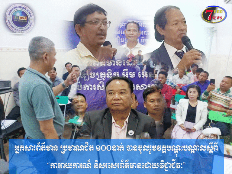 អ្នកសារព័ត៌មាន ប្រមាណជិត ១០០នាក់ បានចូលរួមវគ្គបណ្តុះបណ្តាលស្តីពី “ការរាយការណ៍ និសរសេរព័ត៌មានដោយវិជ្ជាជីវៈ”នៅMSJ អង្គភាព សារព័ត៌មាន 7 មករាញូស៍ បានបញ្ជូន សមាជិកចំនួន១៤ នាក់ ទៅចូលរួមវគ្គសិក្សា ដែលរៀបចំឡើងដោយ ឯកឧត្តមបណ្ឌិត ម៉េង សុភ័ណ្ឌ ប្រធានសមាគមសារព័ត៌មាន អេឡិចត្រូនិក...