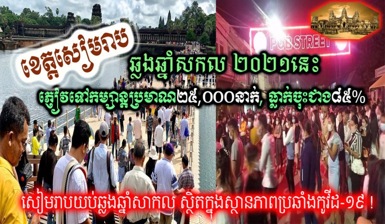 ភ្នំពេញ៖ ចេញផ្សាយ ថ្ងៃសៅរ៍ ៤រោច ខែបុស្ស ឆ្នាំជូត ទោស័ក ព.ស ២៥៦៤, ត្រូវនឹងថ្ងៃទី២ ខែមករា ឆ្នាំ២០២១ (សៀមរាប)៖ ថ្ងៃបុណ្យឆ្លងឆ្នាំសាកល២០២០ -ចូល២០២១ ភ្ញៀវទេសចរជាតិ-អន្តរជាតិនៅខេត្តខេត្តសៀមរាប មកកំសាន្តប្រមាណជាង ២៥,០០០នាក់, ធ្លាក់ចុះជាង៨៥% បើធៀបទៅនឹងឆ្នាំមុន។...