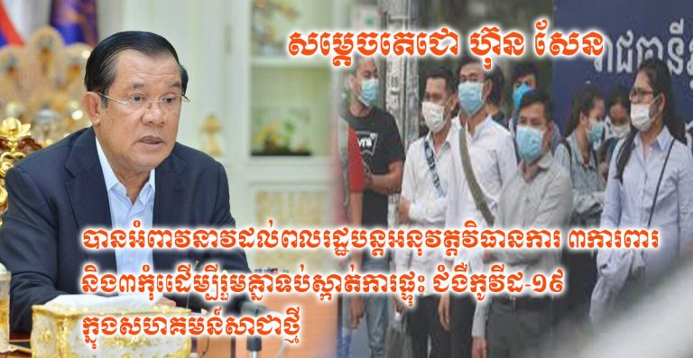 ភ្នំពេញ៖ ចេញផ្សាយ ថ្ងៃសៅរ៍ ៩កើត ខែផល្គុន ឆ្នាំជូត ទោស័ក ព.ស ២៥៦៤, ត្រូវនឹងថ្ងៃទី២០ ខែកុម្ភៈ ឆ្នាំ២០២១ ភ្នំពេញ៖ សម្តេចតេជោហ៊ុនសែននាយករដ្ឋមន្រ្តីនៃព្រះរាជាណាចក្រកម្ពុជា បានអំពាវនាវដល់ពលរដ្ឋបន្តអនុវត្តវិធានការ ៣ការពារ និង៣កុំដើម្បីរួមគ្នាទប់ស្កាត់ការផ្ទុះ ជំងឺកូវីដ-១៩ ក្នុងសហគមន៍សាជាថ្មី ដើម្បី...