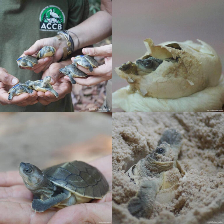 កូនអណ្តើកហ្លួង ជិតផុតពូជចំនួន១០ក្បាល ញាស់ក្នុងមជ្ឈមណ្ឌលអង្គរសម្រាប់ការអភិរក្សជីវៈចម្រុះ កូនអណ្តើកហ្លួងដែលជាសត្វកម្របំផុតមួយប្រភេទត្រូវបានញាស់កូនមួយសំបុកដែលមានចំនួន១០ក្បាលនៅក្នុងមជ្ឈមណ្ឌលអង្គរសម្រាប់ការអភិរក្សជីវៈចម្រុះ (ACCB)។ មជ្ឈមណ្ឌលអង្គរសម្រាប់ការអភិរក្សជីវៈចម្រុះបានឱ្យដឹងនៅថ្ងៃទី២៣ ខែ ឧសភា ថាការញាស់កូនអណ្តើកហ្លួងទាំងនេះនឹងដើរតួដ៏សំខាន់មួយក្នុងការរក្សាភាពចម្រុះនូវសេនេទិច (ហ្សែន) នៃប្រភេទនេះ និងនៅទីបំផុតជួយឱ្យមានកំណើនកើនឡើងវិញនៃចំនួនប្រជាសាស្ត្រនៅក្នុងទីជម្រកដើមរបស់ពួកវា។ សូមបញ្ជាក់ថាអណ្តើកសសៃដែលត្រូវបានគេស្គាល់ថាជាអណ្តើកហ្លួងហើយត្រូវបានគេចាត់ទុកថាជាសត្វល្មូនតំណាងជាតិរបស់ប្រទេសកម្ពុជាដោយព្រះរាជក្រឹត្យបានចេញក្នុងឆ្នាំ២០០៥។ ប្រភេទអណ្តើកហ្លួងនេះគេជឿថាត្រូវបានផុតពូជនៅក្នុងប្រទេសកម្ពុជា ប៉ុន្តែត្រូវបានរកឃើញឡើងវិញនៅក្នុងឆ្នាំ២០០០ដោយការតាំងចិត្តរបស់ក្រុមអ្នកវិទ្យាសាស្ត្រមួយក្រុម។ សព្វថ្ងៃនេះ ពួកវានៅតែប្រឈមនូវការគំរាមកំហែងជាច្រើនដូចជាការបូមខ្សាច់ ការបាត់បង់ទីជម្រក ហើយនឹងទាក់ចាប់ដោយឧបករណ៍នេសាទ។ មជ្ឈមណ្ឌលអង្គរសម្រាប់ការអភិរក្សជីវៈចម្រុះបានឱ្យដឹងដែរថា”...