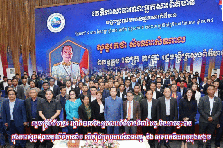 សេរីភាពសារព័ត៌មាននៅកម្ពុជាមានភាពល្អប្រសើរ ភ្នំពេញ៖ ថ្ងៃទី២ ខែឧសភា ឆ្នាំ២០២៤- របាយការណ៍ស្តីពីសេរីភាពសារព័ត៌មាននៅកម្ពុជា, កម្ពុជាបានរៀបចំរបាយការណ៍នេះដោយខ្លួនឯង និងវាយតម្លៃដោយខ្លួនឯងដោយបានចូលរួមពីគ្រប់ភាគី។ ក្រសួងព័ត៌មាននឹងបោះពុម្ពផ្សាយនូវរបាយការណ៍នេះ។ យោងតាមរបាយការណ៍៖ «ស្ថានភាពសេរីភាពសារព័ត៌មាននៅកម្ពុជាមានភាពល្អប្រសើរ ដោយក្នុងចំណោមអ្នកចូលរួមឆ្លើយក្នុងការស្ទង់មតិសរុបចំនួន ៣៤១នាក់ មានមនុស្សចំនួន ៧៩,៨% បានឆ្លើយថាសេរីភាពសារព័ត៌មាននៅកម្ពុជាមានភាពល្អប្រសើរ»។ រូបភាពដោយ ខឹម សុវណ្ណារ៉ា