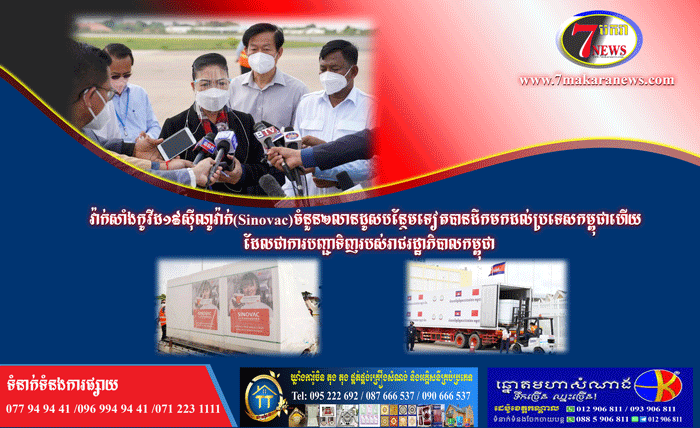 កណ្តាល៖ ចេញផ្សាយថ្ងៃអង្គារ ៨រោច ខែស្រាពណ៍ ឆ្នាំឆ្លូវ ត្រីស័ក ព.ស ២៥៦៥, ត្រូវនឹងថ្ងៃទី ៣១ ខែ សីហា ឆ្នាំ២០២១។ វ៉ាក់សាំងកូវីដ១៩ស៊ីណូវ៉ាក់(Sinovac)ចំនួន២លានដូសបន្ថែមទៀតបានដឹកមកដល់ប្រទេសកម្ពុជាហើយ។ នៅព្រឹកថ្ងៃអង្គារ ទី៣១ ខែសីហា ឆ្នាំ២០២១នេះ វ៉ាក់សាំងបង្ការជំងឺកូវីដ១៩ ស៊ីណូវ៉ាក់...