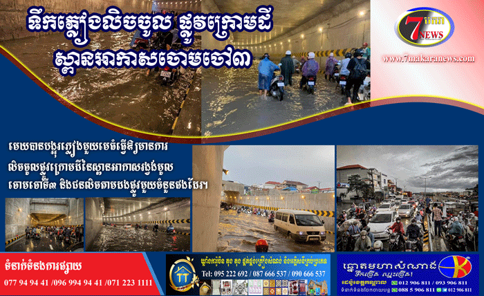 កណ្តាល៖ ចេញផ្សាយថ្ងៃព្រហស្បតិ៍ ១០រោច ខែស្រាពណ៍ ឆ្នាំឆ្លូវ ត្រីស័ក ព.ស ២៥៦៥, ត្រូវនឹងថ្ងៃទី ២ ខែ កញ្ញា ឆ្នាំ២០២១។ មេឃបានបង្អុរភ្លៀងមួយមេធំធ្វើឲ្យមានការលិចចូលផ្លូវក្រោមដីនៃស្ពានអាកាសរង្វង់មូលចោមចៅទី៣ និងជនលិចតាមដងផ្លូវមួយចំនួនផងដែរ។ រាជធានីភ្នំពេញ ៖ នៅវេលាម៉ោង៤:៣៥នាទីរសៀលថ្ងៃទី០១ ខែកញ្ញា ឆ្នាំ២០២១នេះ...