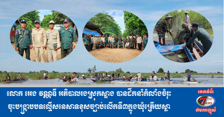 លោក អេង វណ្ណឌី អភិបាលរងស្រុកស្អាង បានដឹកនាំកំលាំងចំរុះចុះបង្រ្កាបបទល្មើសនេសាទខុសច្បាប់លើកទី៣ក្នុងឃុំត្រើយស្លា។ ខេត្តកណ្តាល៖ ឃុំត្រើយស្លា នាព្រឹកថ្ងៃពុធ ទី១៣ ខែកញ្ញា ឆ្នាំ២០២៣ ដឹកនាំដោយលោក អេង វណ្ណឌី អភិបាលរងស្រុកស្អាង តំណាងលោក ជឺ គឹមហៃ អភិបាលស្រុកស្អាង ទីតាំងបង្រ្កាបមានចំនួន៣ទីតាំង...