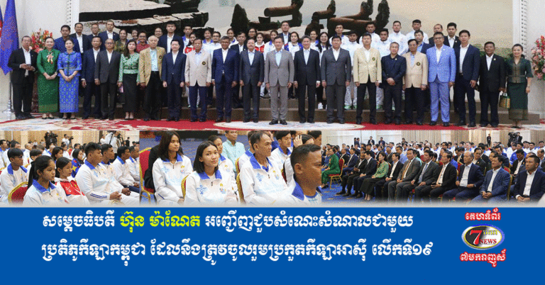 សម្តេចធិបតី ហ៊ុន ម៉ាណែត អញ្ជើញជួបសំណេះសំណាលជាមួយ ប្រតិភូកីឡាកម្ពុជា ដែលនឹងត្រូវចូលរួមប្រកួតកីឡាអាស៊ី លើកទី១៩ ភ្នំពេញ ថ្ងៃទី២០ ខែកញ្ញា ឆ្នាំ២០២៣– សម្តេចមហាបវរធិបតី ហ៊ុន ម៉ាណែត នាយករដ្ឋមន្ត្រី នៃព្រះរាជាណាចក្រកម្ពុជា អញ្ជើញជួបសំណេះសំណាលជាមួយ ប្រតិភូកីឡាកម្ពុជា ដែលនឹងត្រូវចូលរួមប្រកួត «កីឡាអាស៊ី...