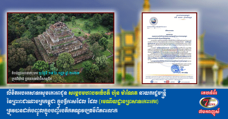 លិខិតអបអរសាទរសូមគោរពជូនសម្តេចមហាបវរធិបតី ហ៊ុន ម៉ាណែត នាយករដ្ឋមន្រ្តី នៃព្រះរាជាណាចក្រកម្ពុជា ក្នុងឪកាសដែល (រមណីយដ្ឋានប្រាសាទកោះកេរ ) ត្រូវបានដាក់បញ្ចូលក្នុងបញ្ចីបេតិកភណ្ឌវប្បធម៌ពិភពលោក