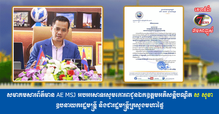 សមាគមសារព័ត៌មាន AE MSJ អបអរសាទរសូមគោរពជូនឯកឧត្តមអភិសន្តិបណ្ឌិត ស សុខា ឧបនាយករដ្ឋមន្រ្តី និងជារដ្ឋមន្រ្តីក្រសួងមហាផ្ទៃ។
