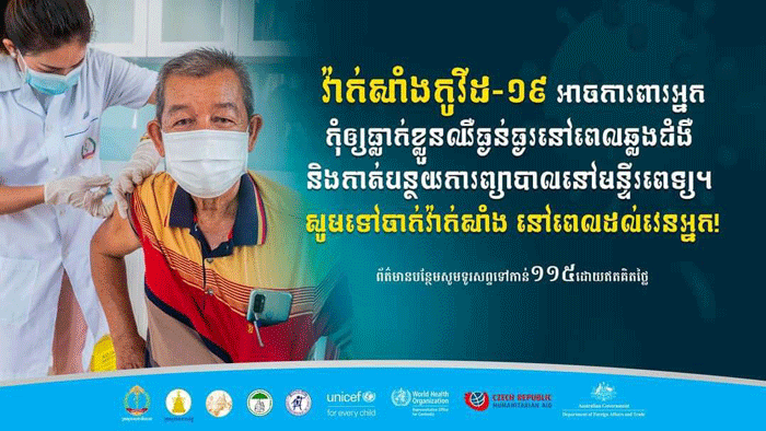 ភ្នំពេញ៖ ចេញផ្សាយ ថ្ងៃពុធ ២រោច ខែពិសាខ ឆ្នាំឆ្លូវ ត្រីស័ក ព.ស ២៥៦៥, ត្រូវនឹងថ្ងៃទី ២៨ ខែ មេសា ឆ្នាំ២០២១។ រហូតមកទាល់ពេលនេះ ប្រជាជនកម្ពុជាដែលស្ថិតក្នុងក្រុមអាទិភាពចំនួនជាងមួយលាននាក់ហើយ ដែលទទួលការចាក់វ៉ាក់សាំង ប៉ុន្តែការប្រយុទ្ធប្រឆាំងនេះនៅមិនទាន់បញ្ចប់នៅឡើយទេ។ ប្រសិនបើអ្នកមិនទាន់បានទទួលវ៉ាក់សាំងការពារជំងឺកូវីដ-១៩ សូមរក្សាភាពអត់ធ្មត់...